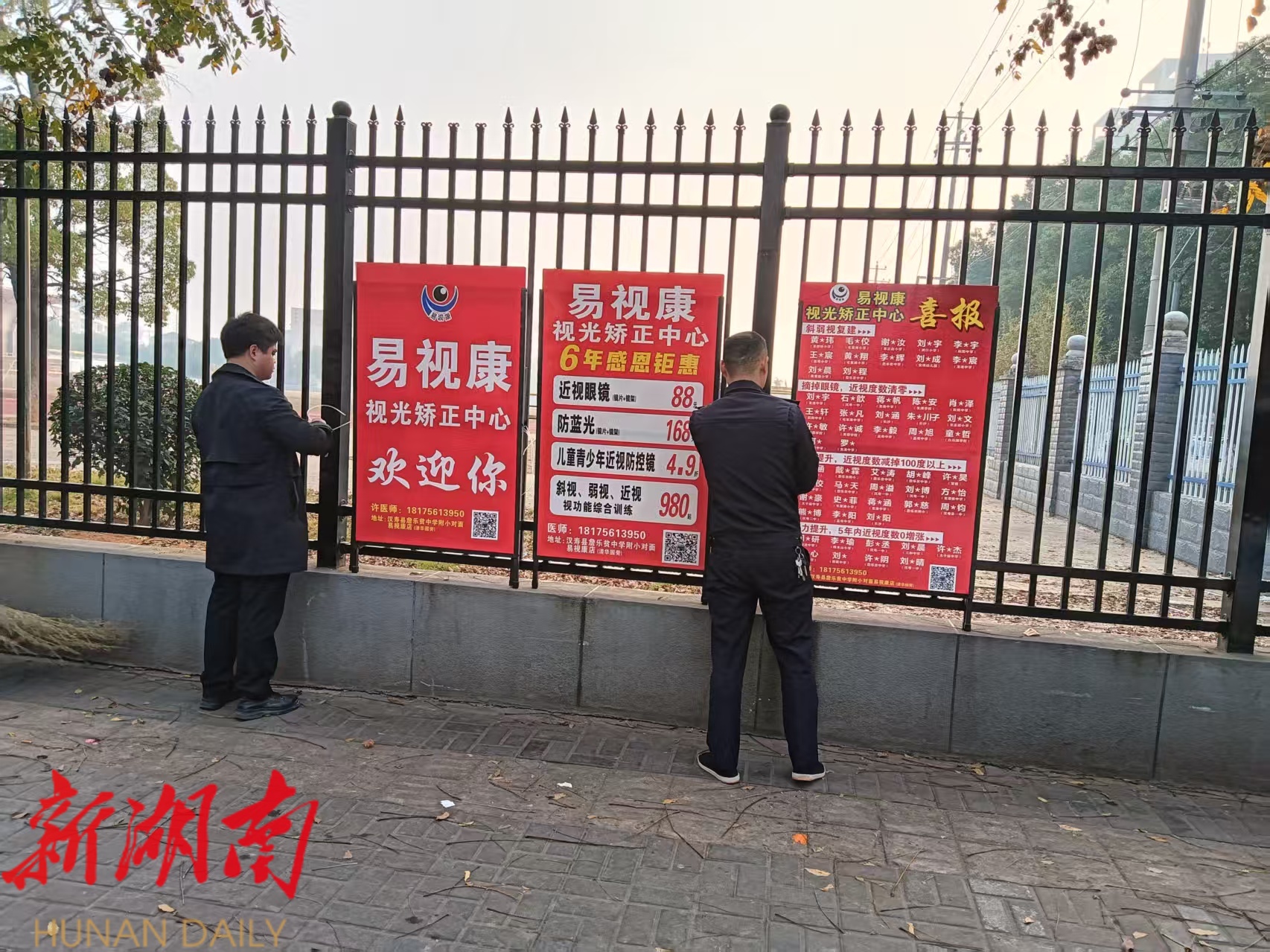 汉寿县城市管理和综合执法局拆除校园周边违规广告牌