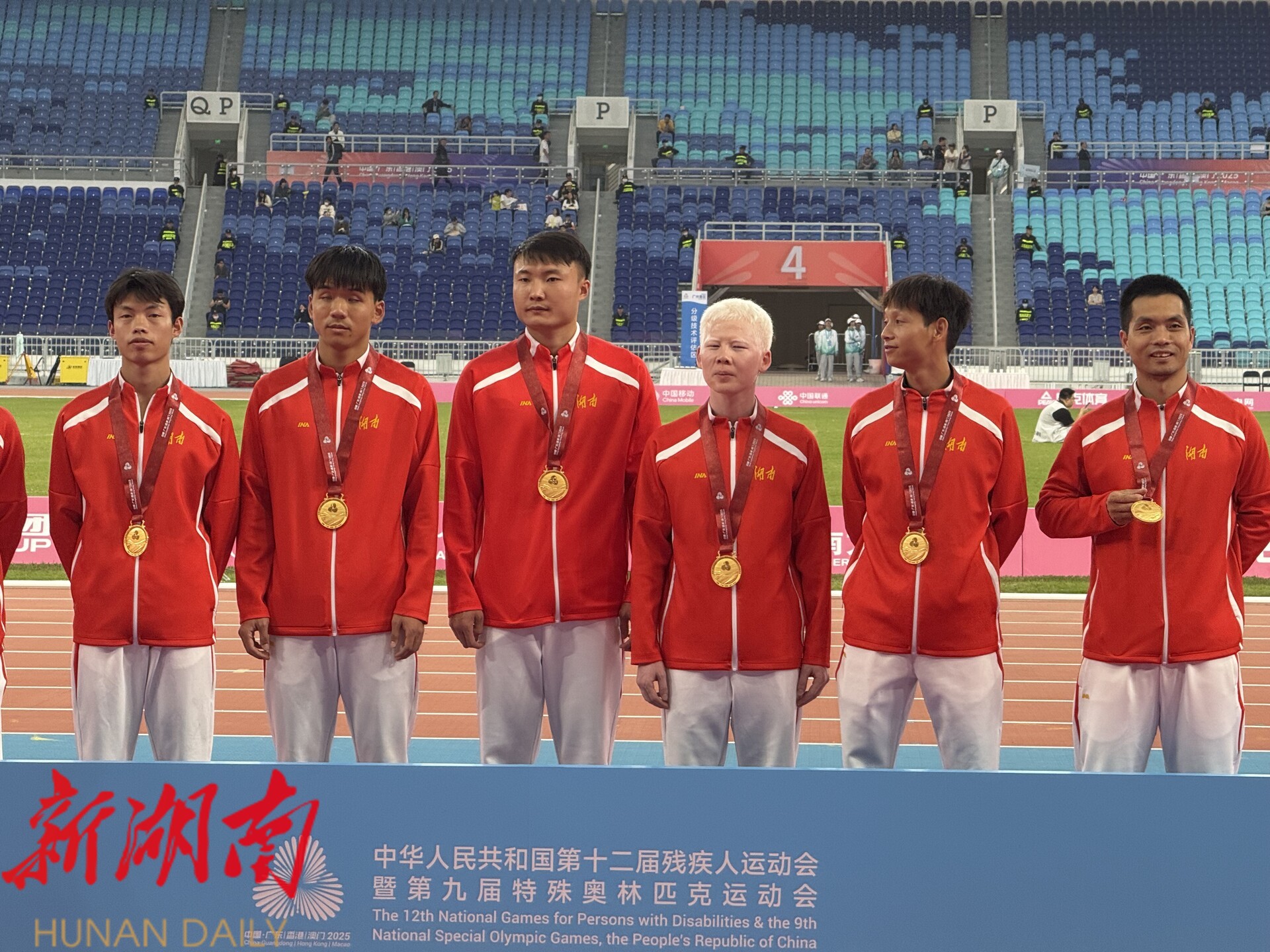 残特奥会男子4×100米接力湖南队0.001秒险胜夺金 洞口选手刘卫圆梦