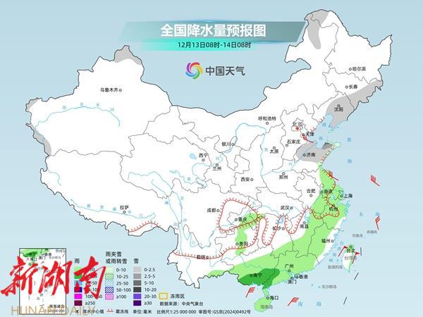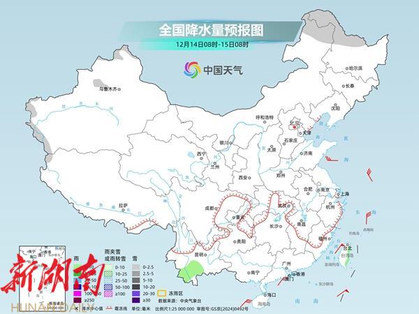 立冬以来最大规模雨雪天气昨天进入鼎盛阶段,昨天8时至今天6时,西北地区东部、内蒙古中部、华北、黄淮等地部分地区出现中到大雪或雨夹雪,山西吕梁、河南新乡和开封、山东泰安等地遭遇暴雪;湖南南部、江西南部、广西中北部、广东北部等地出现中到大雨。