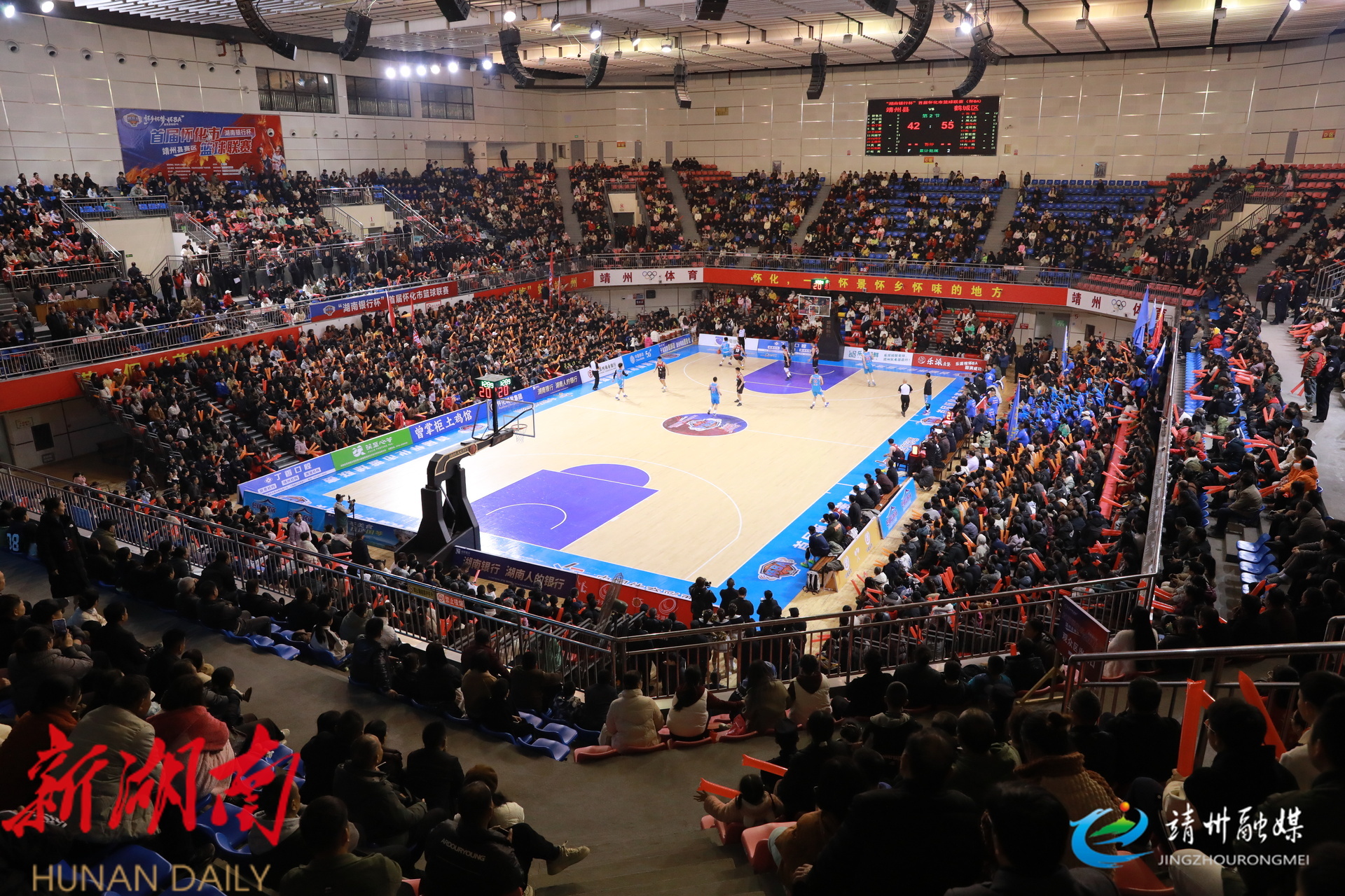 靖州融媒12月1 5 日讯 (记者 钦苏芬 实习生 刘昊 通讯员 张书凡)12月14日晚,靖州苗族侗族自治县民族体育馆篮球馆内灯火璀璨、人声鼎沸,“ 怀BA”篮球联赛靖州赛区主场首场比赛正式开赛,靖州队与鹤城区队同台竞技,4000余名观众到场观战,共同见证这场体育与文化交融的盛会。