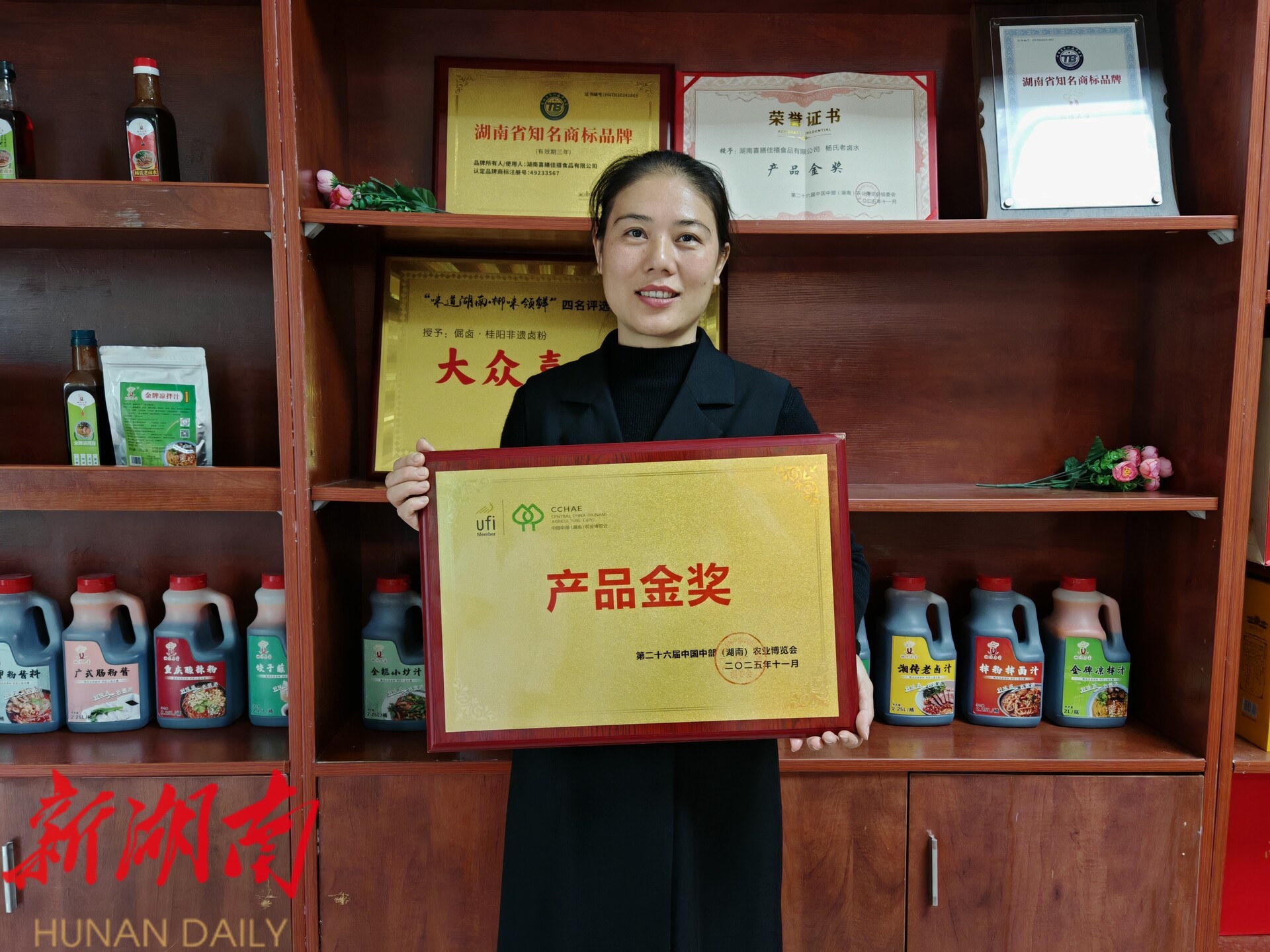 新桂阳12月15日讯(记者 李玮嘉 周立志) 近日,第二十六届中国中部(湖南)农业博览会圆满落幕,湖南喜膳佳禧食品有限公司凭借过硬的产品品质与深厚的湘味底蕴,其特色酱料产品在众多参展品中脱颖而出,一举斩获农博会金奖,成为湘味调味品领域的亮眼新星。