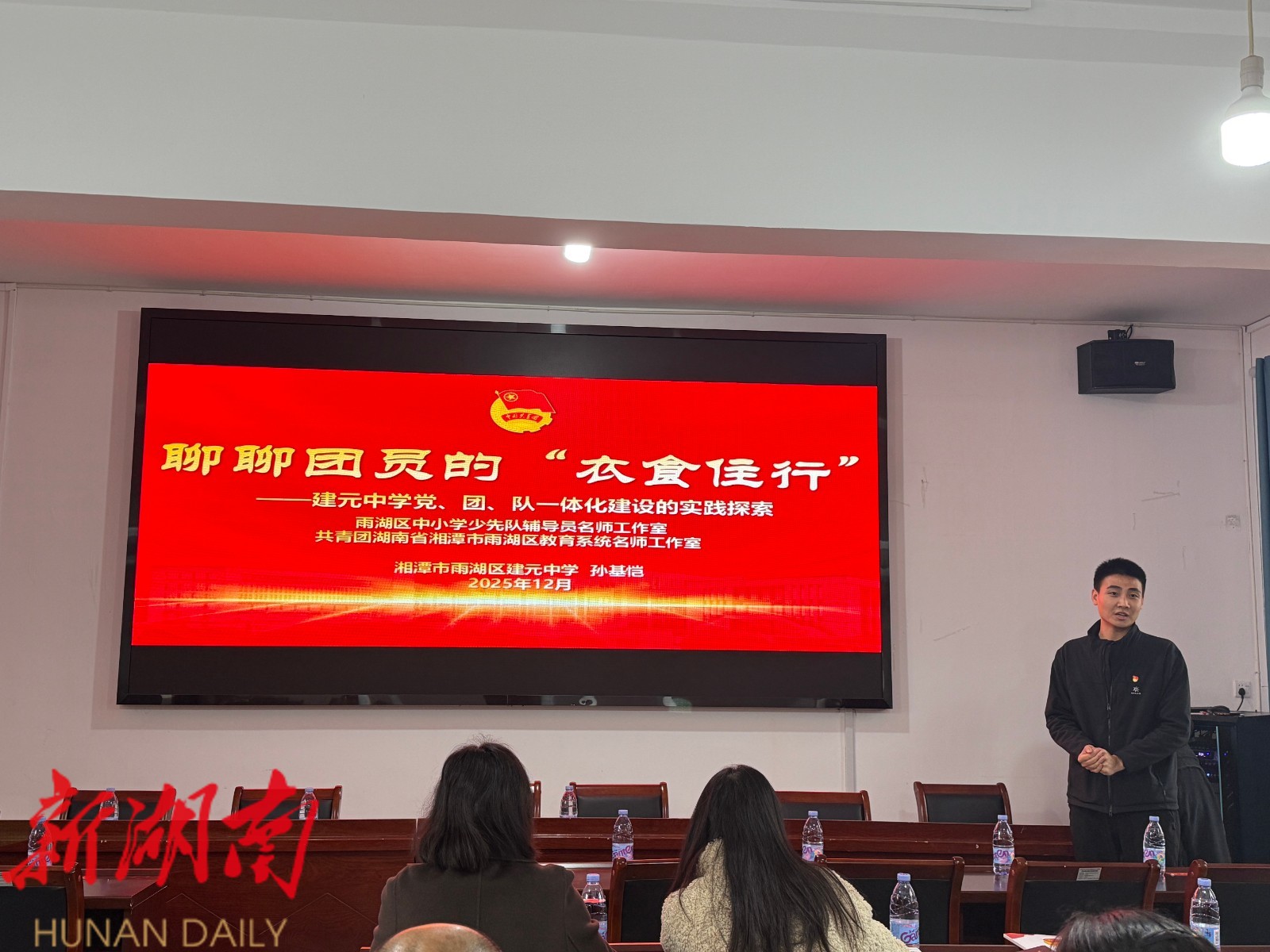 建元中学孙基恺老师作了题为“让团徽在校园熠熠生辉”的共青团工作经验分享。他从团建品牌打造、“党团队”阶梯式培养体系构建、“推优入团”规范实施等方面,系统介绍了学校思政育人的实践经验。分享内容针对性强、操作性高,为泉塘子中学团队工作提供了可借鉴的方法和思路。