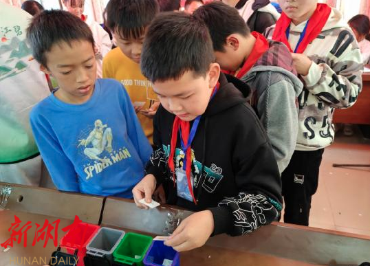 互动实践环节更让环保认知落地生根。模拟“水土流失”实验中,植被覆盖土壤经“暴雨”冲刷仍清澈,无植被土地则泥水横流,鲜明对比让“绿水青山就是金山银山”的道理不言自明。“垃圾分类大挑战”里,同学们化身“环保小能手”精准投放垃圾卡片,在欢乐中掌握实用技能。宣讲团同步发放环保手册,鼓励大家当好家庭“环保监督员”。