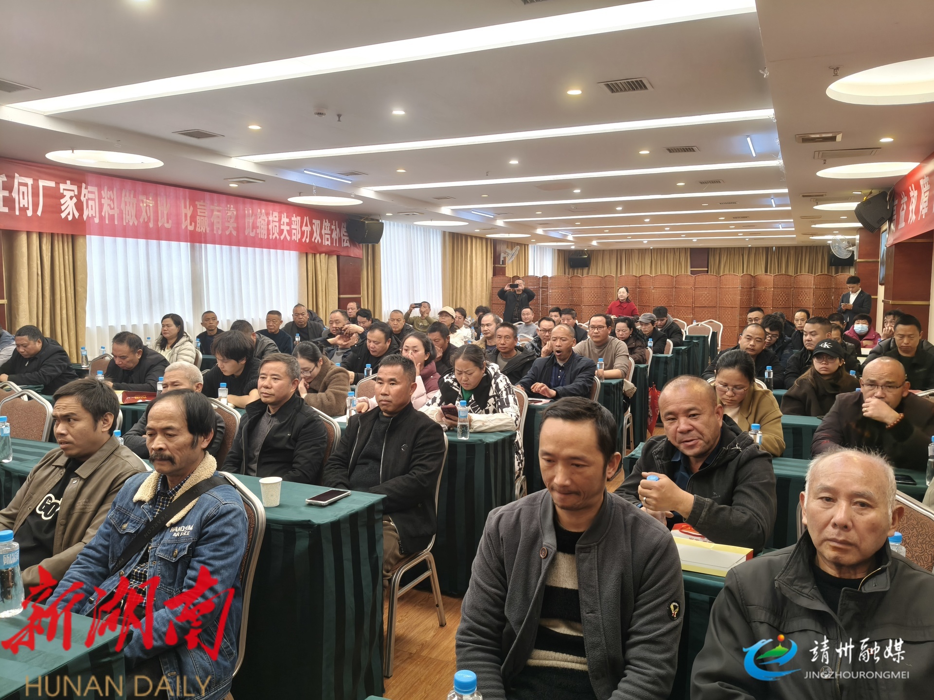 靖州融媒12月15日讯 (通讯员 黄少永)12月15日,靖州苗族侗族自治县畜牧水产事务中心联合怀化正大养殖公司,召开全县生猪规模养殖场产业发展大会,共谋产业发展蓝图。