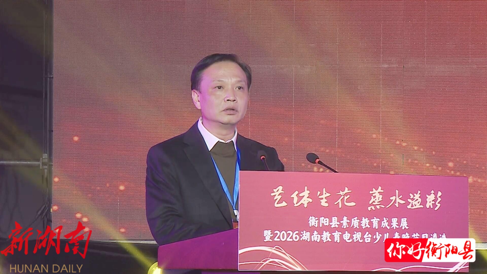 12月14日,我县素质教育成果展暨2026湖南教育电视台少儿春晚节目遴选活动在船山广场和县一中分设专场举行,活动采用“线下展演+线上直播”形式,全方位展示我县体艺教育丰硕成果。副市长谢宏,县委书记孙浩,市教育局局长邹远国,县委副书记、县长杨峰,县委副书记、宣传部部长刘洋出席活动。