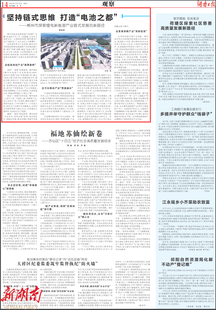变资源优势为产业胜势,郴州近年来积极抢抓锂电新能源产业发展的窗口期,紧盯“双碳”战略,锚定“电池之都”目标,出台有力政策、主动靠前服务,以高的规划、新的机制、实的保障,探索出一条锂电新能源产业链式发展的郴州路子。