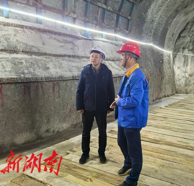 在孟公镇梅山灌区工程灌区1标渠首隧洞出口,邹剑锋听取相关负责人工作汇报,详细询问施工进度及施工中遇到的困难等情况。他强调,梅山灌区工程是事关衡邵娄区域长远发展、惠及民生福祉的重点水利工程。各级各部门要高度重视、统一思想,全面贯彻落实省、市部署要求,紧盯时间节点,科学统筹调度,在确保工程质量和施工安全的前提下,加快推进项目建设进度,争取早建成、早投用、早惠民。相关部门要主动靠前协调,优化服务保障,高效解决项目推进中遇到的难点、堵点问题,为项目建设营造良好的施工环境。