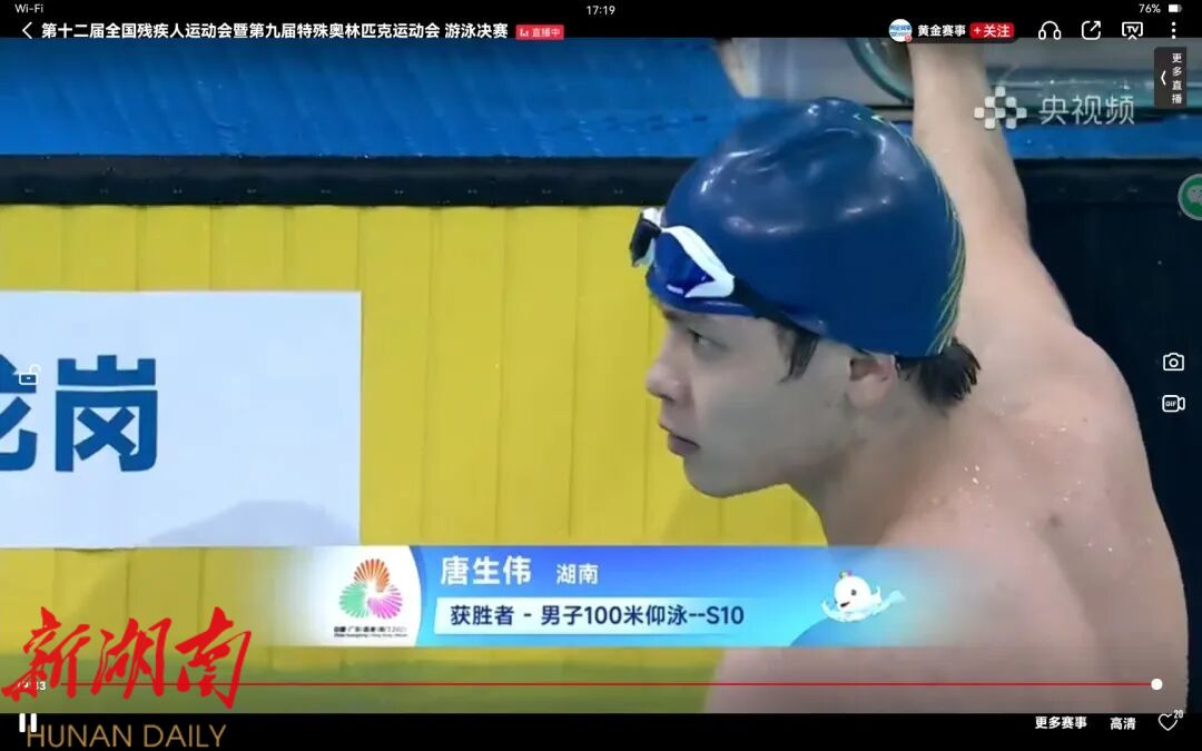 新石门客户端12月17日讯(记者 刘越)近日,第十二届全国残疾人运动会赛场传来捷报,石门籍运动员唐生伟代表湖南省在S10级100米仰泳项目中奋勇争先,最终以优异成绩斩获金牌。