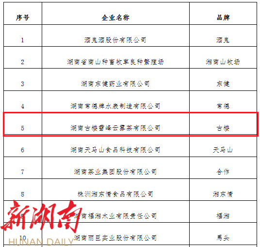 洞口融媒12月17日讯(记者:胡海鹏) 12月16日,省商务厅 公示 了 湖南省第七批“湖南老字号”拟推荐企业名单 , 湖南古楼雪峰云雾茶有限公司 进入名单 。