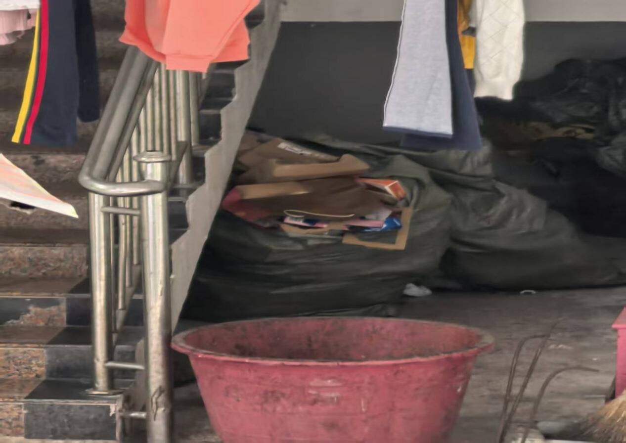 隐患问题 : 男生宿舍楼道堆放大量纸箱等废弃物,存在安全隐患。