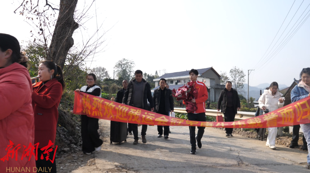 新石门客户端12月19日讯(记者 刘越 黄慧)12月17日,刚刚在第十二届全国残疾人运动会上斩获S10级100米仰泳金牌的石门籍运动员唐生伟,带着全国冠军的荣耀回到家乡石门县所街乡。沿途锣鼓喧天、鞭炮齐鸣,乡亲们用最朴素热烈的方式,迎接这位家乡骄傲的归来。
