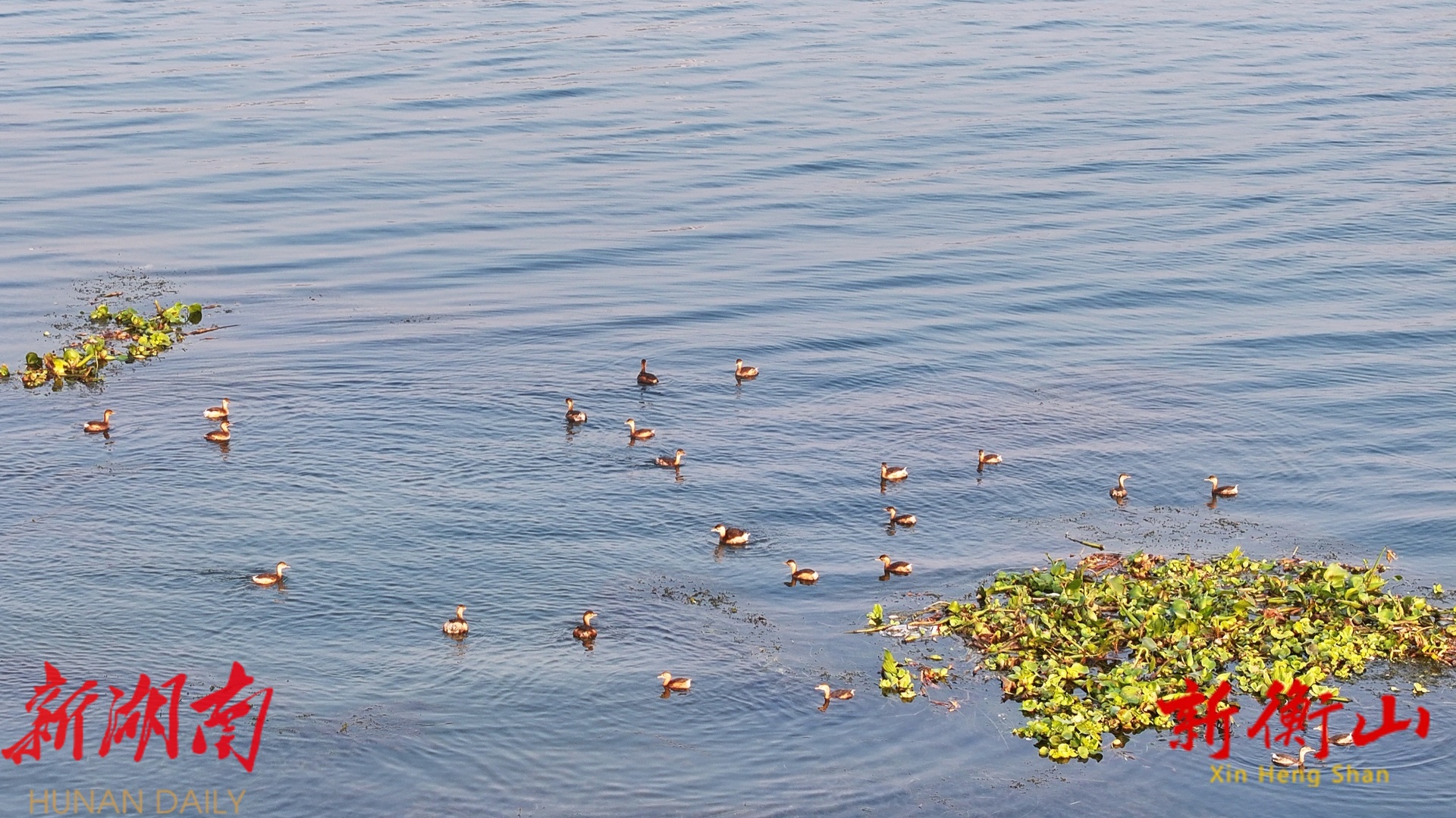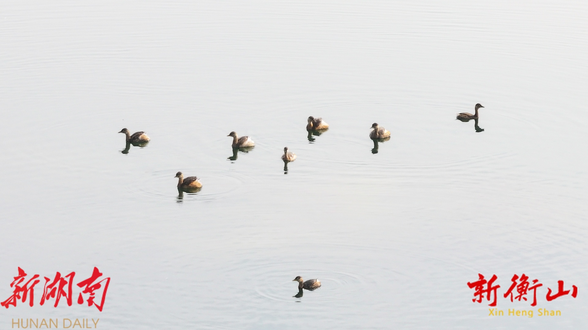 衡山:小䴙䴘“组团”游湘江 造访衡山渡
