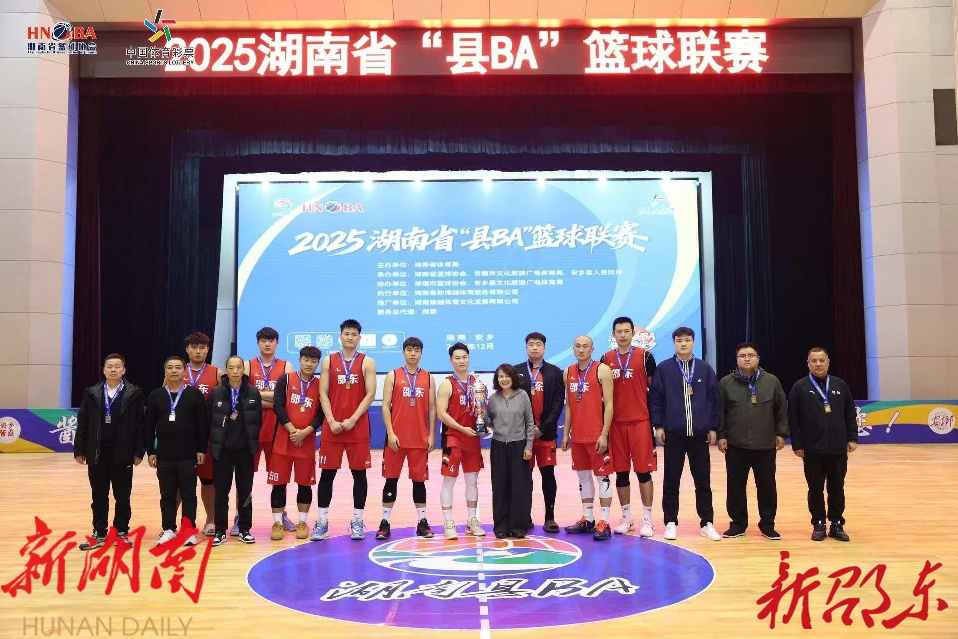 新邵东客户端12月20日讯(通讯员 尹作良) 12月19日晚,2025湖南省“县BA”篮球联赛在常德市安乡县深柳中学体育馆圆满落幕,邵东队荣获亚军。这是邵东队继2023年获得该项赛事亚军,2024年获得冠军后的又一荣耀。