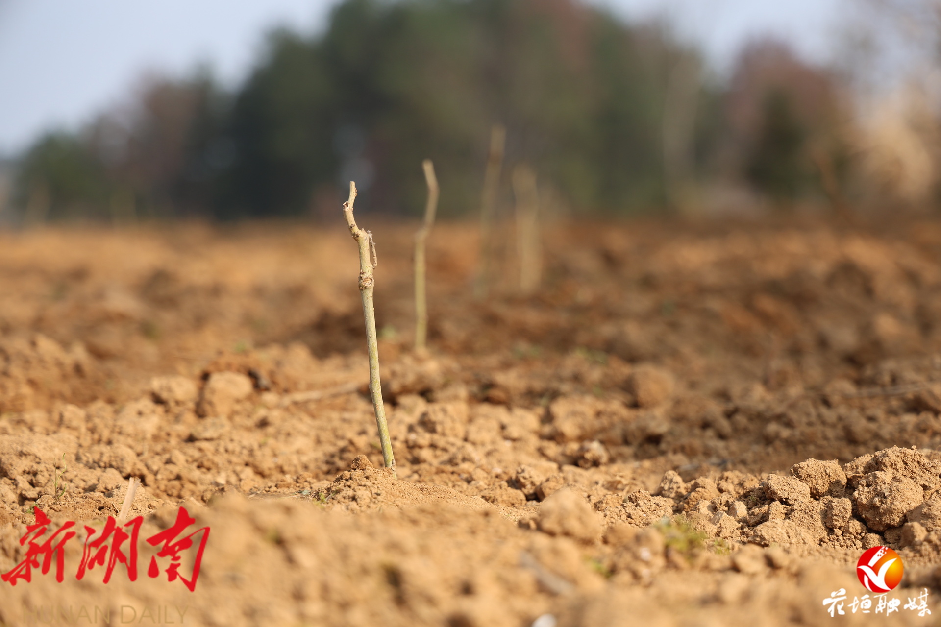 刚新栽下的桑树苗