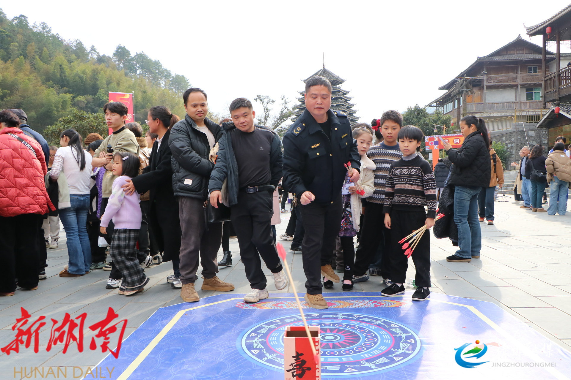 2025年靖州侗年入选第五批县级非物质文化遗产代表性项目名录,侗族有“吃冻”的习俗,“吃冻”以吃鱼冻为主,其他美酒佳肴也应有尽有,犹如过春节,所以又叫“侗年”。活动当天,岩脚侗寨年味浓郁,喝拦门酒、杀年猪、盛装游寨、祭“三神”等传统习俗轮番上演,丰富多彩的非遗展演让现场掌声雷动。游客们兴致勃勃地体验了剪纸、雕花蜜饯制作,参与赶猪套鹅等趣味活动,沉浸式感受侗族文化的独特魅力。