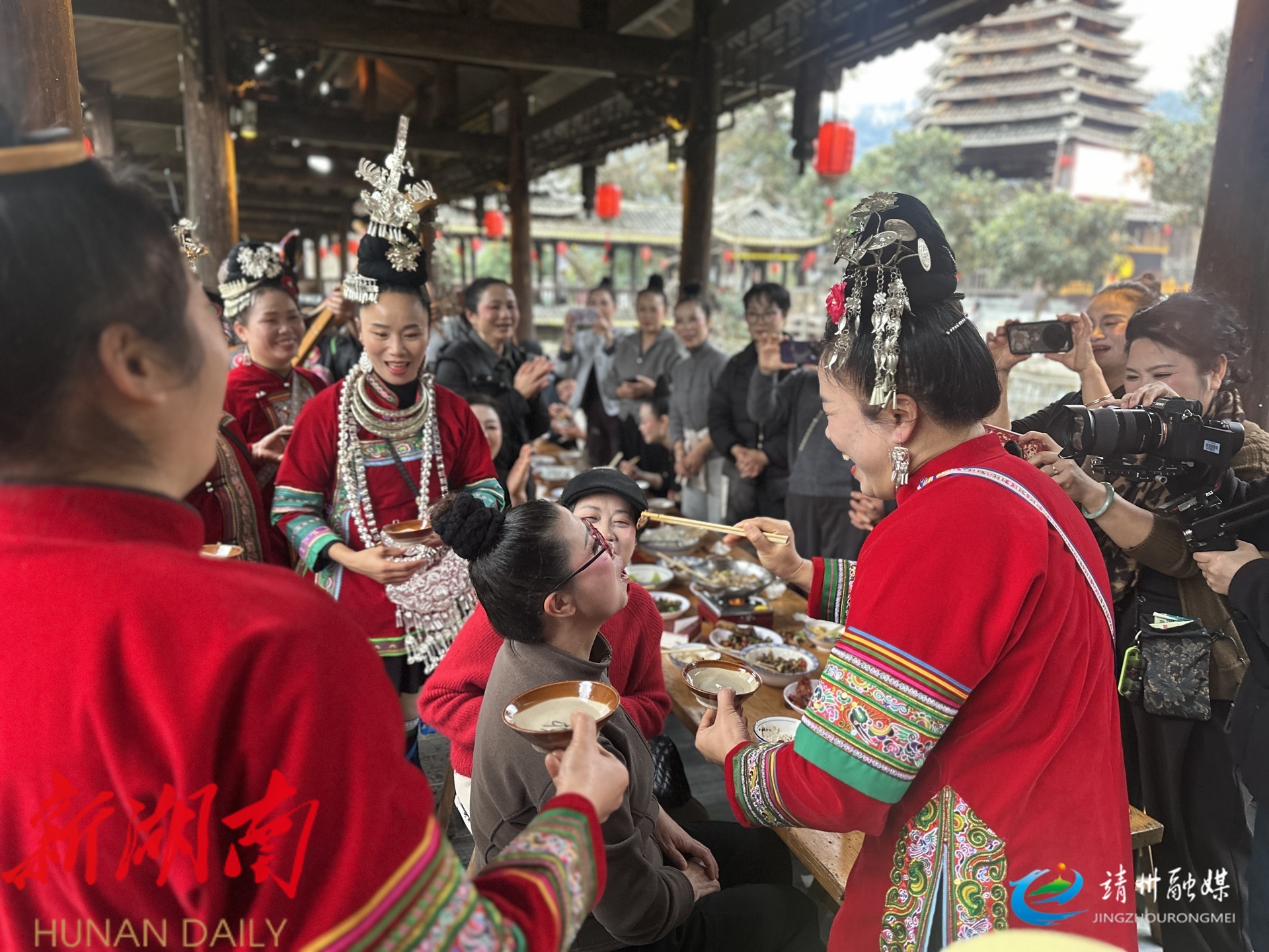 游客体验侗族拦门酒(夏源懋 摄)