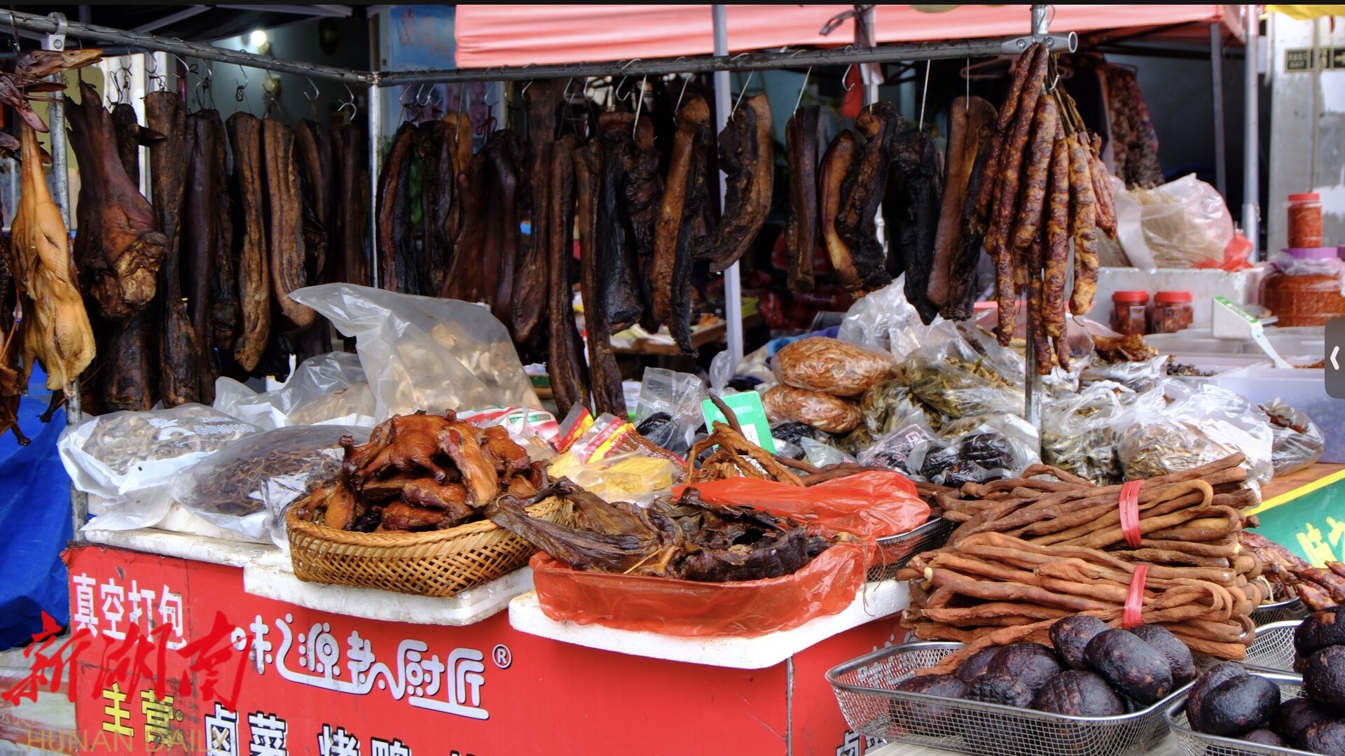 洞口融媒12月23日讯(记者:邓贝乐) 冬至已过,在洞口县各大农贸市场、商超,腊肉、香肠、猪血丸子、鸭掌包肉等特色农特产品陆续上市,年味渐浓。