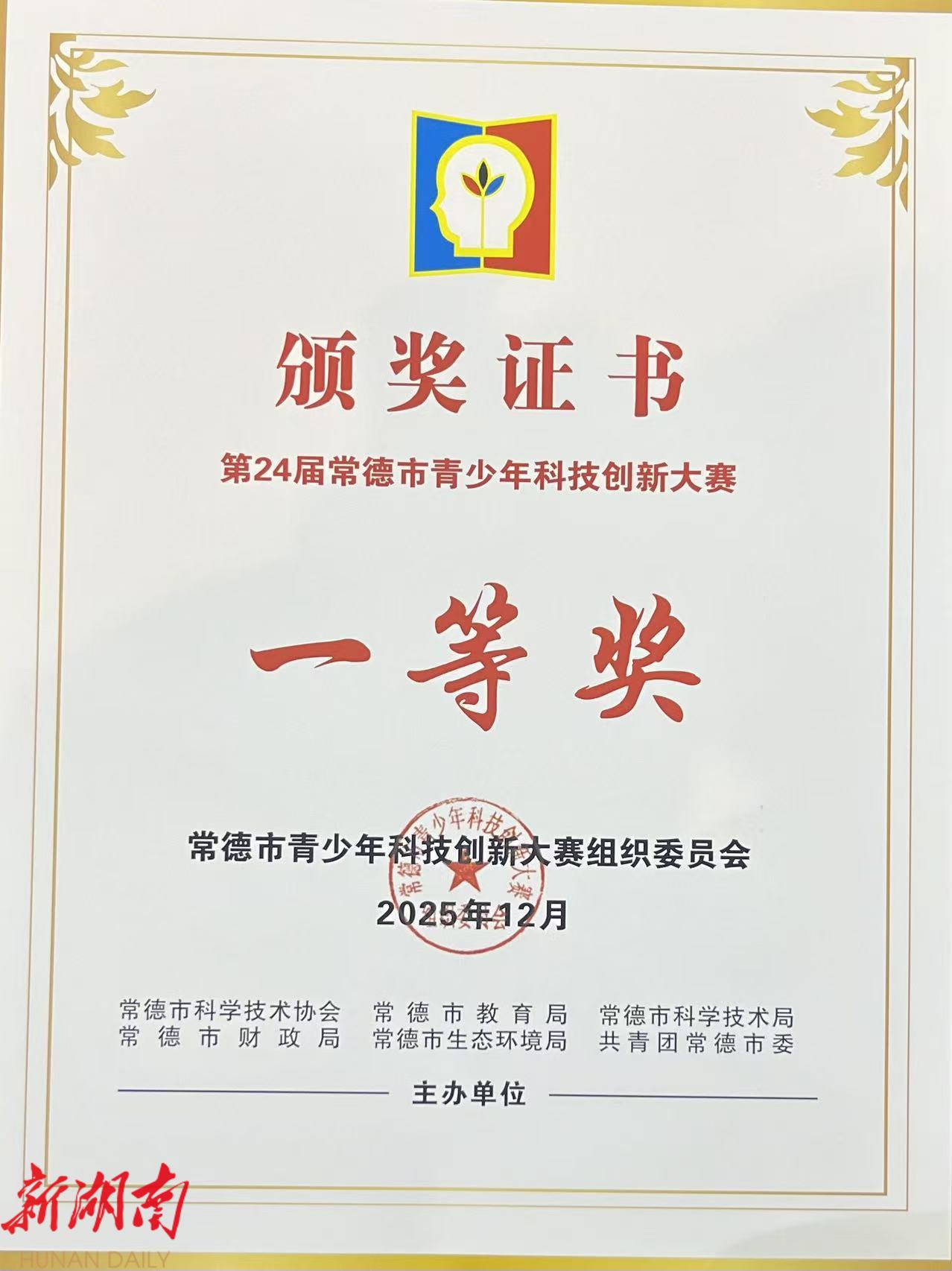 科技创新!石门学生一作品荣获市级一等奖