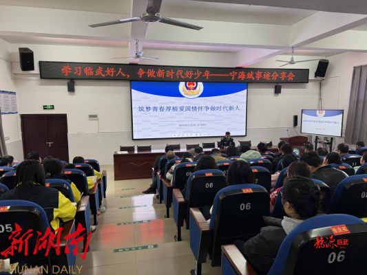 龙源临武客户端12月24日讯(通讯员 邓唐娜)12月18日,“学习临武好人,争做时代好少年”百优榜样进校园活动在临武县第五中学举行,临武县公安局民警宁海斌受邀走进校园,为师生们带来了一场感人至深、催人奋进的事迹分享会,用自身的经历诠释了何为忠诚、奉献与爱国。