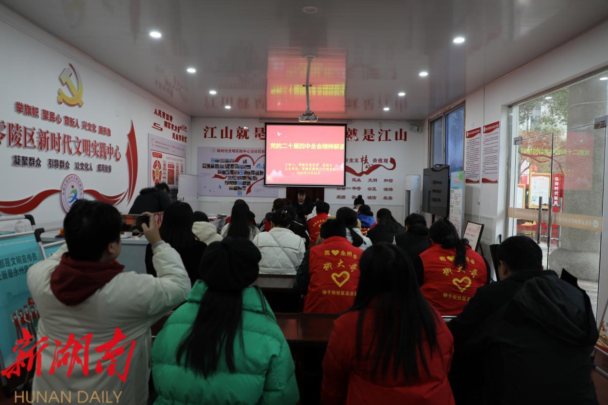 湖南日报·新湖南客户端12月24日讯(通讯员 陈羽 王帆)12月24日上午,零陵区新时代文明实践中心开展学习宣传贯彻党的二十届四中全会精神理论微宣讲活动。活动以“微宣讲”形式推动党的创新理论深入基层、贴近群众,吸引街道社区联络员、群众代表等踊跃参与,现场学习氛围浓厚。