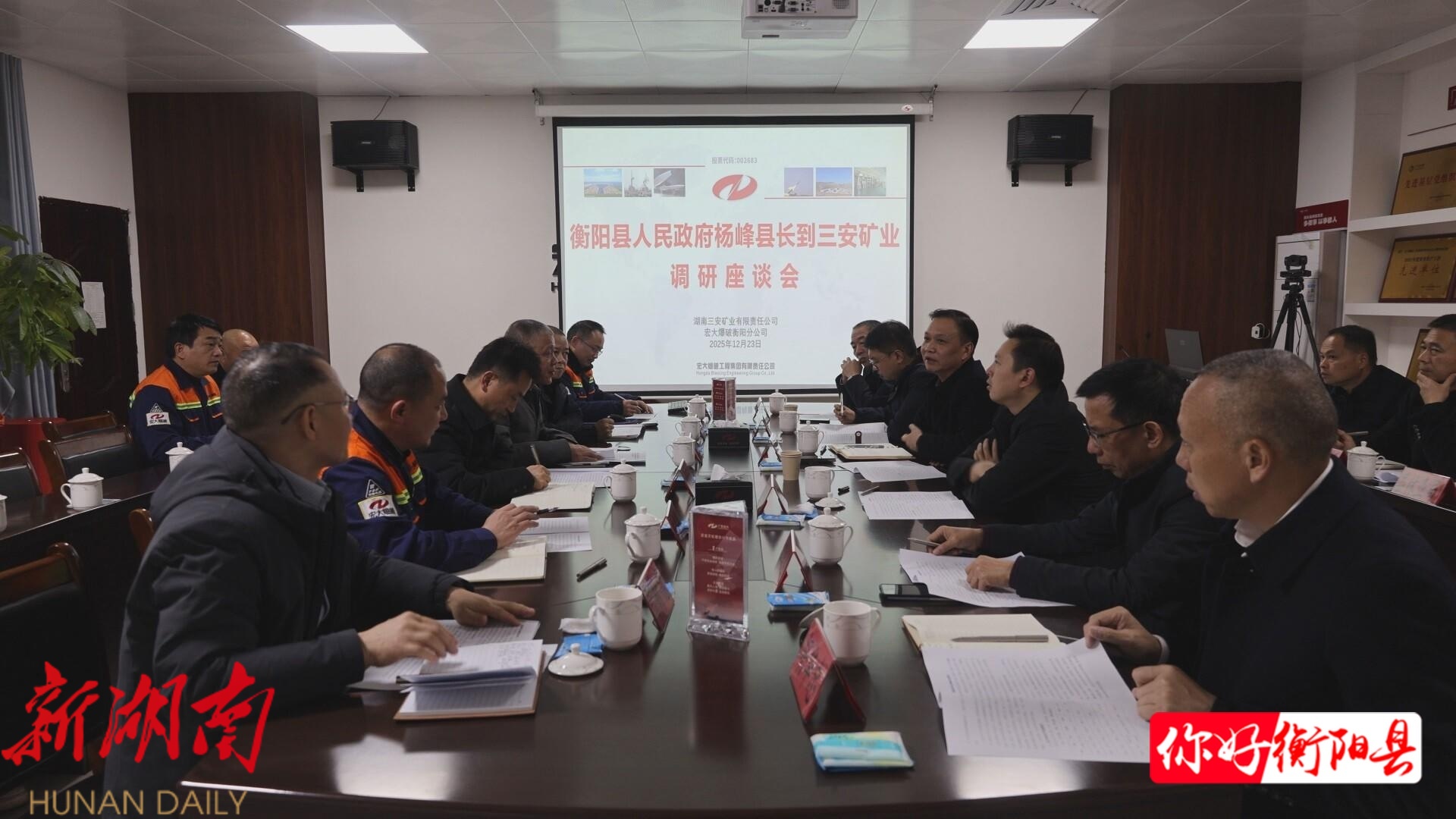 衡阳县融媒12月24日讯(记者:李洁霞 廖辉煌 )12月23日,县委副书记、县长杨峰深入湖南三安矿业有限责任公司调研,聚焦企业发展堵点难点现场办公。他强调,要深入学习贯彻习近平总书记关于民营经济发展的重要论述,以"服务企业就是服务发展"的鲜明导向,精准破解制约因素,全力推动企业实现安全、绿色、高质量发展。