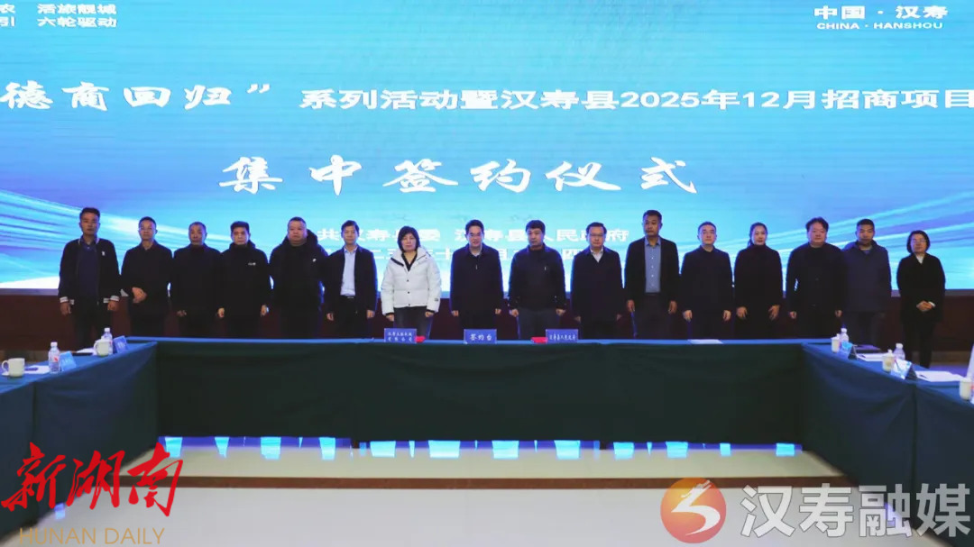集中签约的六个重点产业项目涵盖先进制造、农产品深加工、新能源材料生产等领域, 项目的成功引进,得益于汉寿日益凸显的综合优势。在交通区位上,汉寿地处常德南大门,毗邻长株潭,衔接成渝与武汉都市圈,常益长高铁、多条高速穿境而过,兼具铁路货运站、机场与水路便捷通道,形成了高效的立体交通网络。在发展活力上,汉寿已形成工程机械、生物医药等百亿级产业集群,特色农业与文旅产业蓬勃发展,“双增三迈”的发展目标展现出强劲增长潜力。在营商环境上,汉寿持续打造“走进汉寿,办事无忧”服务品牌,致力于为企业提供全方位、高效率的服务保障,让投资者安心创业、放心发展。