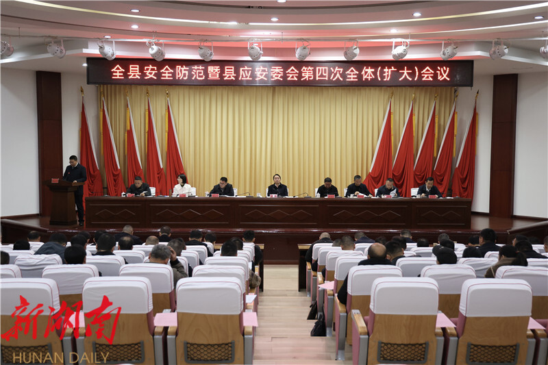 湖南日报·新湖南客户端12月25日讯(通讯员 尹宇豪 张帆) 12月24日,全县安全防范暨县应安委会第四次全体(扩大)会议召开。县委副书记、县长吴光文出席会议并讲话,副县长胡海平、张文毅、续广宁、李樱、刘斌清、刘炀、戴卓伟及县应安委成员单位主要负责同志、安全强基固本攻坚有关成员单位主要负责同志、各乡镇(街道)乡镇长(主任)、各派出所所长、县应安委办有关人员等参加会议。