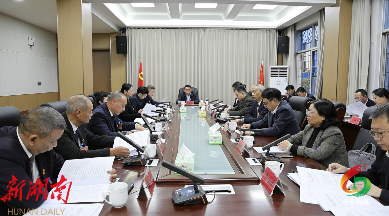 桂东县融媒体中心12月24日讯(记者 李涛)12月24日下午,县十六届人大五次会议召开主席团第三次会议。县委书记蔡富强,县委副书记、县长尹建恒,县委副书记、县委办主任李攀,县人大常委会党组书记、主任周国栋等主席团成员出席会议。