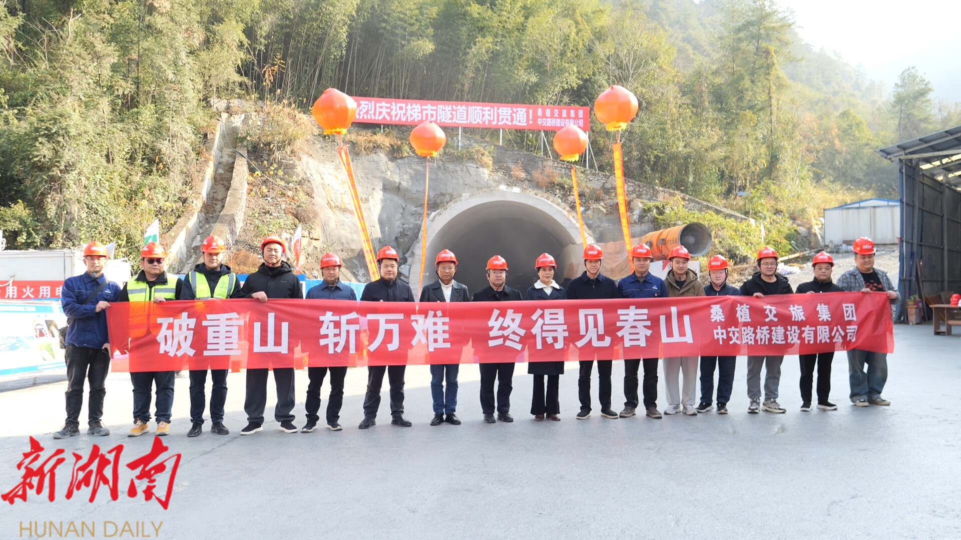 梯市隧道全长2840米,是全线技术难度最高、施工周期最长的控制性工程,其贯通标志着项目建设取得核心突破 。“在县委、县政府的坚强领导下,交旅集团承建的官瑞公路(二期)项目克服了隧道多次涌水、资金短缺等困难,仅用八个月就完成了梯市段隧道的建设,比原计划提前半年,于今日顺利实现贯通,生动诠释了‘破重山,斩万难,终得见春山’的奋斗精神。”桑植县交通旅游建设投资集团有限公司总经理金小明说道。