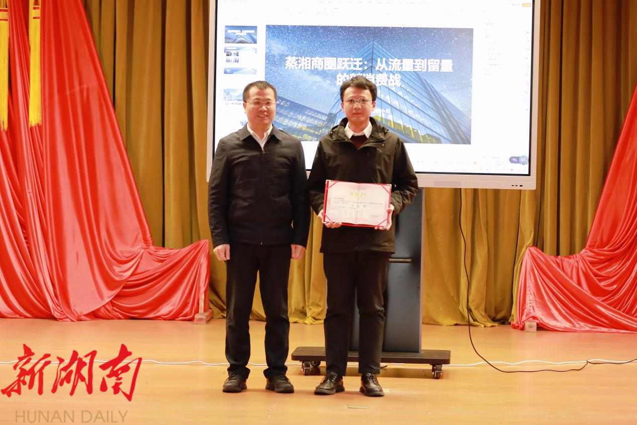 在五个调研组汇报完毕后,评委组按照既定评审标准,对各调研组的汇报内容、表达效果和互动表现进行了综合评分。最终,商区调研组《蒸湘商圈跃迁:从流量到留量的新消费战》斩获一等奖;景区调研组《山水皆祈福,寻心安雨母》、街区调研组《杨柳4S街区:迈向现代化汽车生态服务示范区的转型之路》荣获二等奖;片区调研组《精研市场明走势,深挖价值定方略》、园区调研组《“钢”好破局,解锁衡阳钢管深加工园区高质量发展密码》获得三等奖。