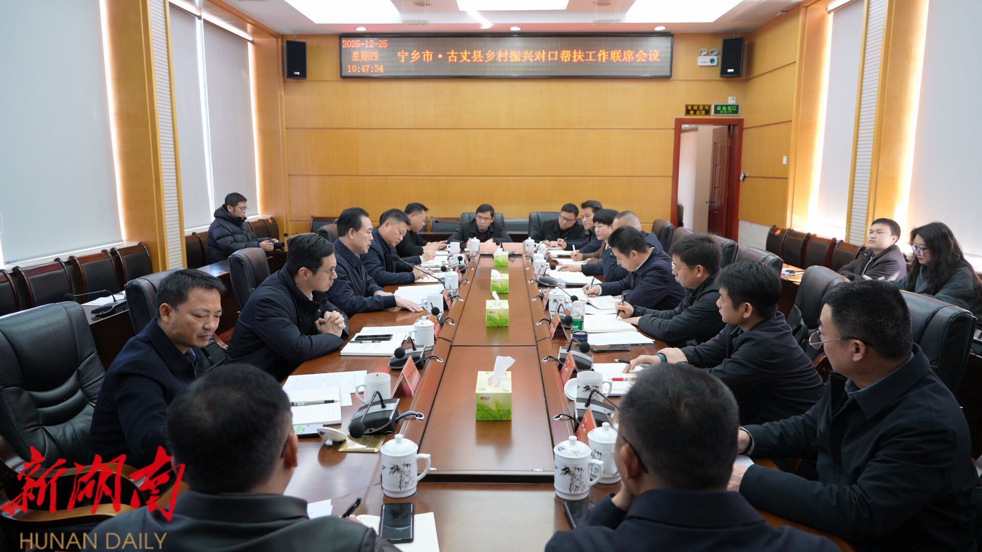 新湖南客户端12月25日讯(通讯员 郑湘 龙宇)12月25日,宁乡经开区党工委书记、宁乡市委书记张作林率队到古丈县,就乡村振兴对口帮扶工作进行实地调研,与古丈县共商协作、共谋发展。古丈县委书记滕朝辉参加。