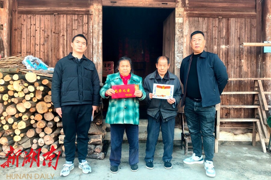 视外桃源客户端12月22日讯(通讯员:李湘)冬日和煦,暖阳融融。 12月19日, 沙坪镇人民武装部与退役军人服务站工作人员携着崭新的 光荣牌和 入伍通知书,穿行在乡间村巷,将一份份荣光,送往今年秋季应征入伍的新兵家中。