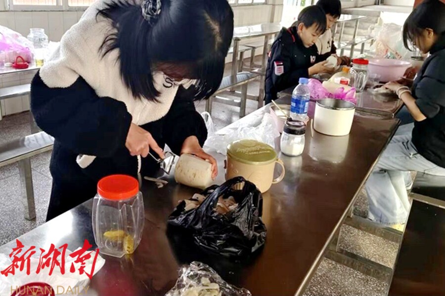 牛车河镇中学:劳动实践趣味多 学生巧手腌萝卜
