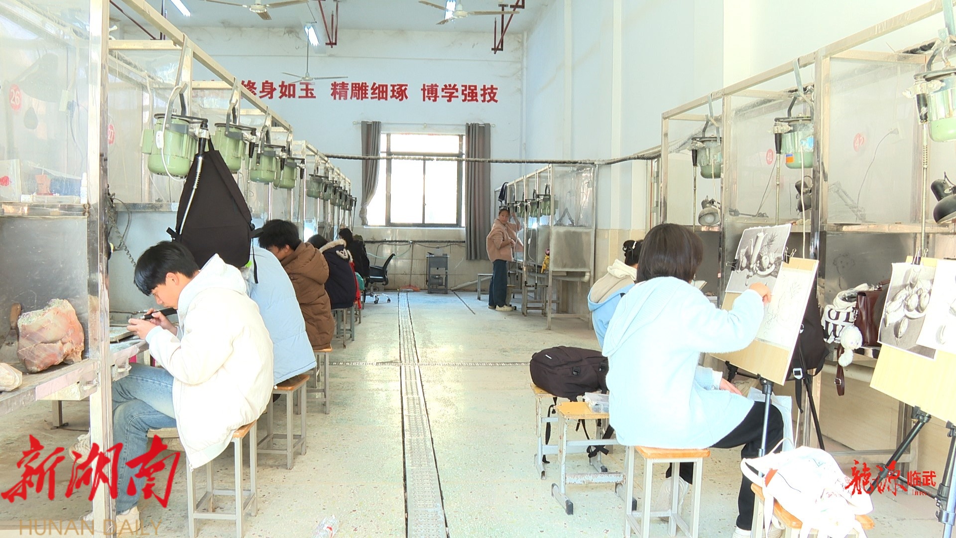 县职业中专学生周湘怡说,在绘制玉石雕刻的草图时,她一度难以把握手部的细节表现。在老师的悉心指导和自身的勤学苦练下,她终于突破了这一瓶颈,实现了预期的艺术效果。未来,她将继续精进技艺,探索将更多现代元素融入创作构思。