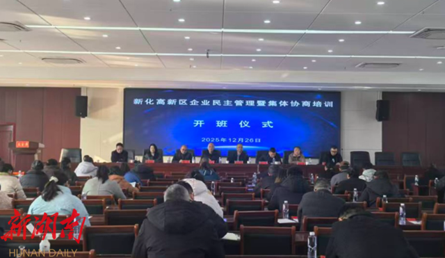 湖南日报·新湖南客户端12月28日讯(通讯员 伍嘉媛)12月26日,新化高新区举行企业民主管理暨集体协商专题培训。省总工会基层工作部一级调研员邓三成,县三级调研员、县总工会党组书记、常务副主席伍玉章出席。