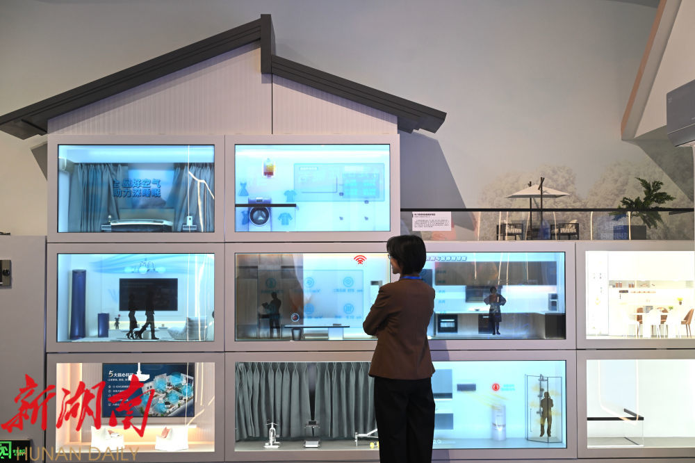 ↑ 这是在“筑基强国路——中国制造‘十四五’成就展”上展出的智能家居模型(12月29日摄)。