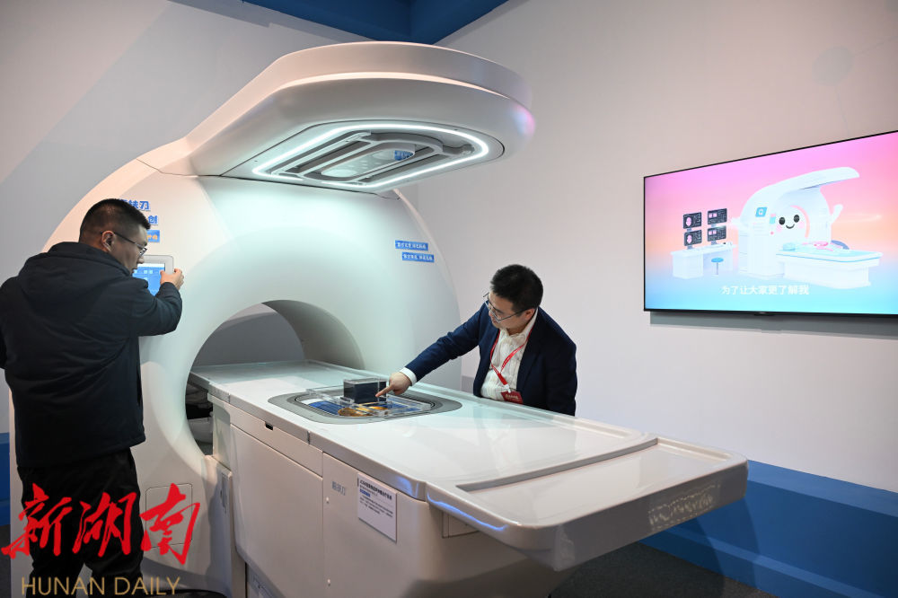 ↑ 这是在“筑基强国路——中国制造‘十四五’成就展”上展出的JC300型聚焦超声肿瘤治疗系统(12月29日摄)。