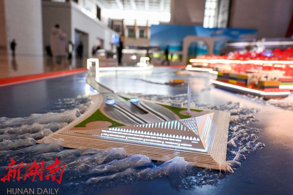 ↑ 这是在“筑基强国路——中国制造‘十四五’成就展”上展出的深中通道模型(12月29日摄)。