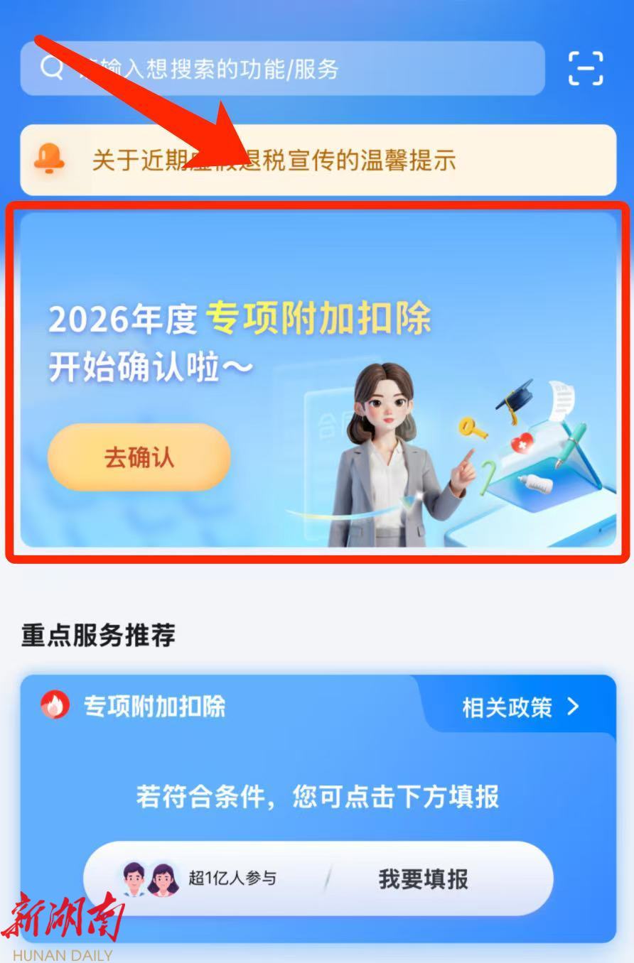 在手机上打开个人所得税App,在首页选择“2026年度专项附加扣除填报”。