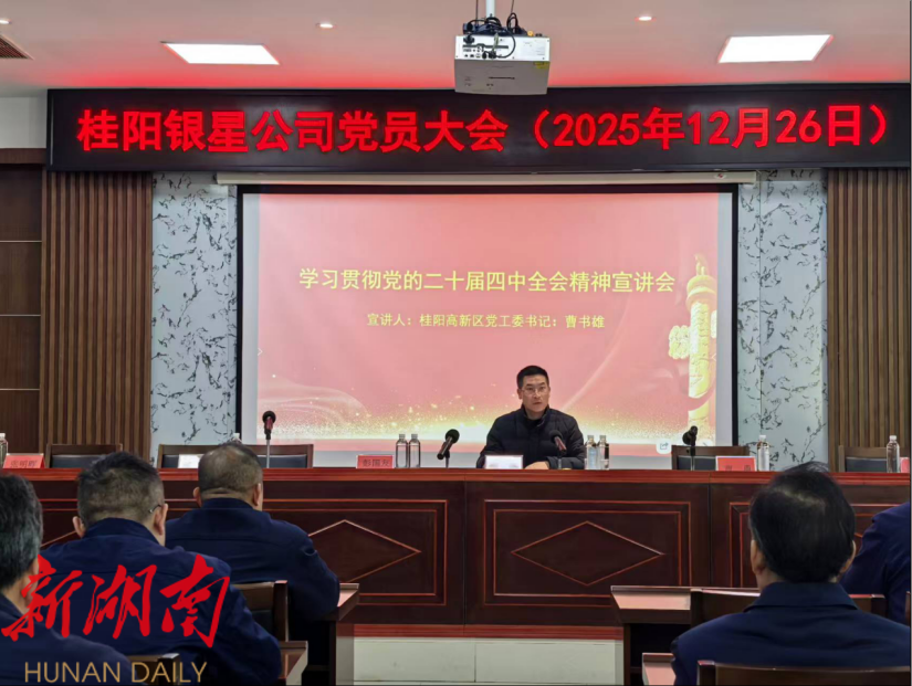 新桂阳12月30日讯(通讯员 敖俊 曾昭芳 罗解军)12月26日,桂阳高新区党工委书记曹书雄深入辖区重点企业桂阳银星有色冶炼有限公司宣讲党的二十届四中全会精神。