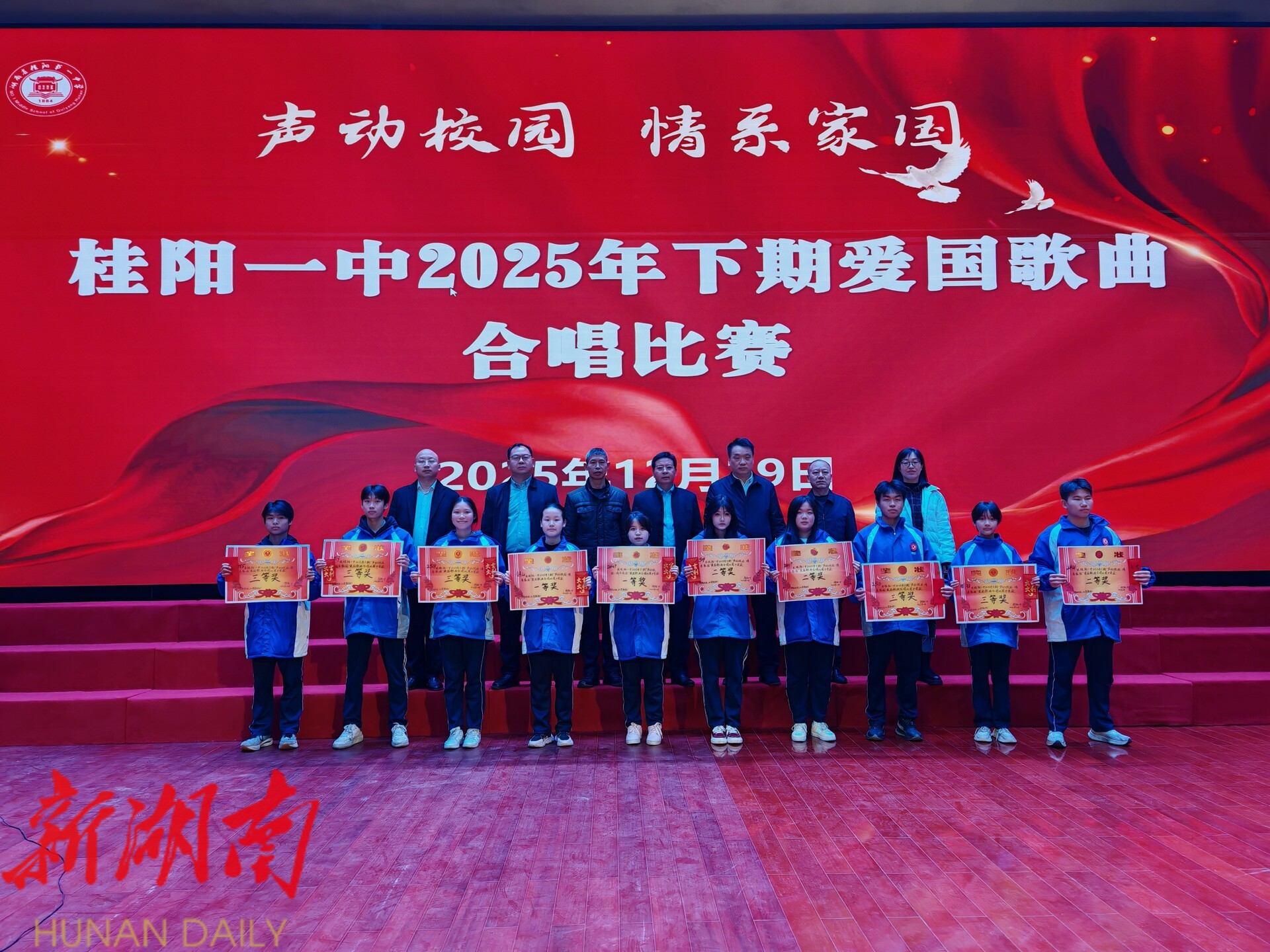 新桂阳12月30日讯(记者 周立志)12月29日,桂阳一中开展“声动校园 情系家园”2025年下期爱国歌曲合唱比赛。