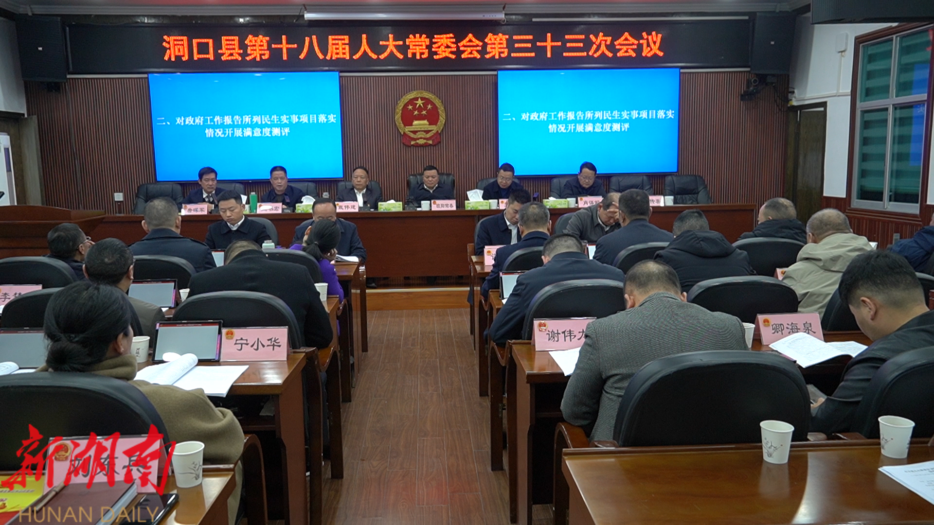 洞口融媒12月30日讯 ( 记者:江京晟 通讯员:张凤 ) 12月30日,洞口县第十八届人大常委会第三十三次会议召开。 县人大常委会主任欧阳佑春主持会议,县人大常委会副主任戴伟建、肖谋解、向书宏、唐晖军出席会议。 县领导罗颢、杨国荣、唐凌峰、李学礼 等列席会议。