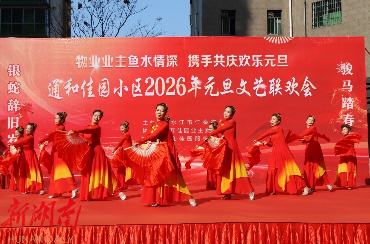 湖南日报·新湖南客户端12月31日讯(通讯员 罗曦)12月28日,冷水江市通和佳园小区内暖意融融,一场主题为“物业业主鱼水情深 携手共庆欢乐元旦”的2026年元旦文艺联欢会热烈举行。业主与物业人员携手登台,以一场自编自演的文艺盛宴,共叙邻里情,同迎新年到。