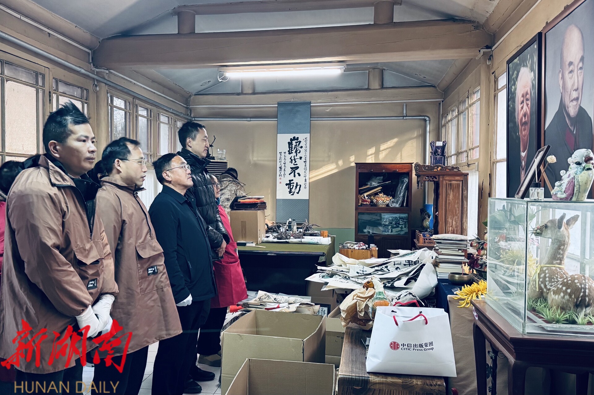 贺龙纪念馆文物征集工作组一行8人,在萧云松的指导下,整理、登记萧克将军生前用过的电视柜、办公桌、军事研究书籍等实物资料达54箱。