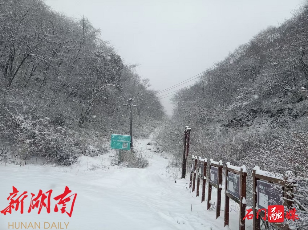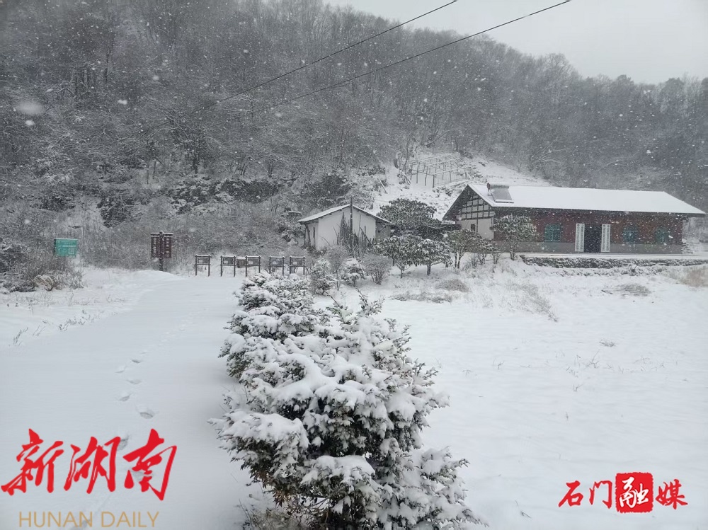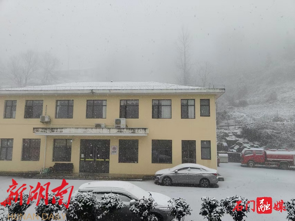 新石门客户端12月31日讯(记者 张黎明 通讯员 刘钰洁 金培松 李坤洋 于心生 )受冷空气影响,12月31日,常德市石门县壶瓶山镇、东山峰管理区、南北镇境内高海拔山区出现降雪。