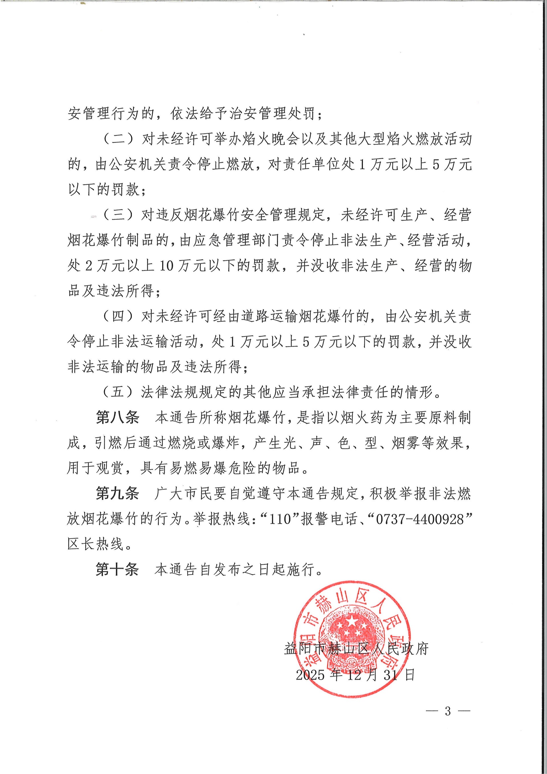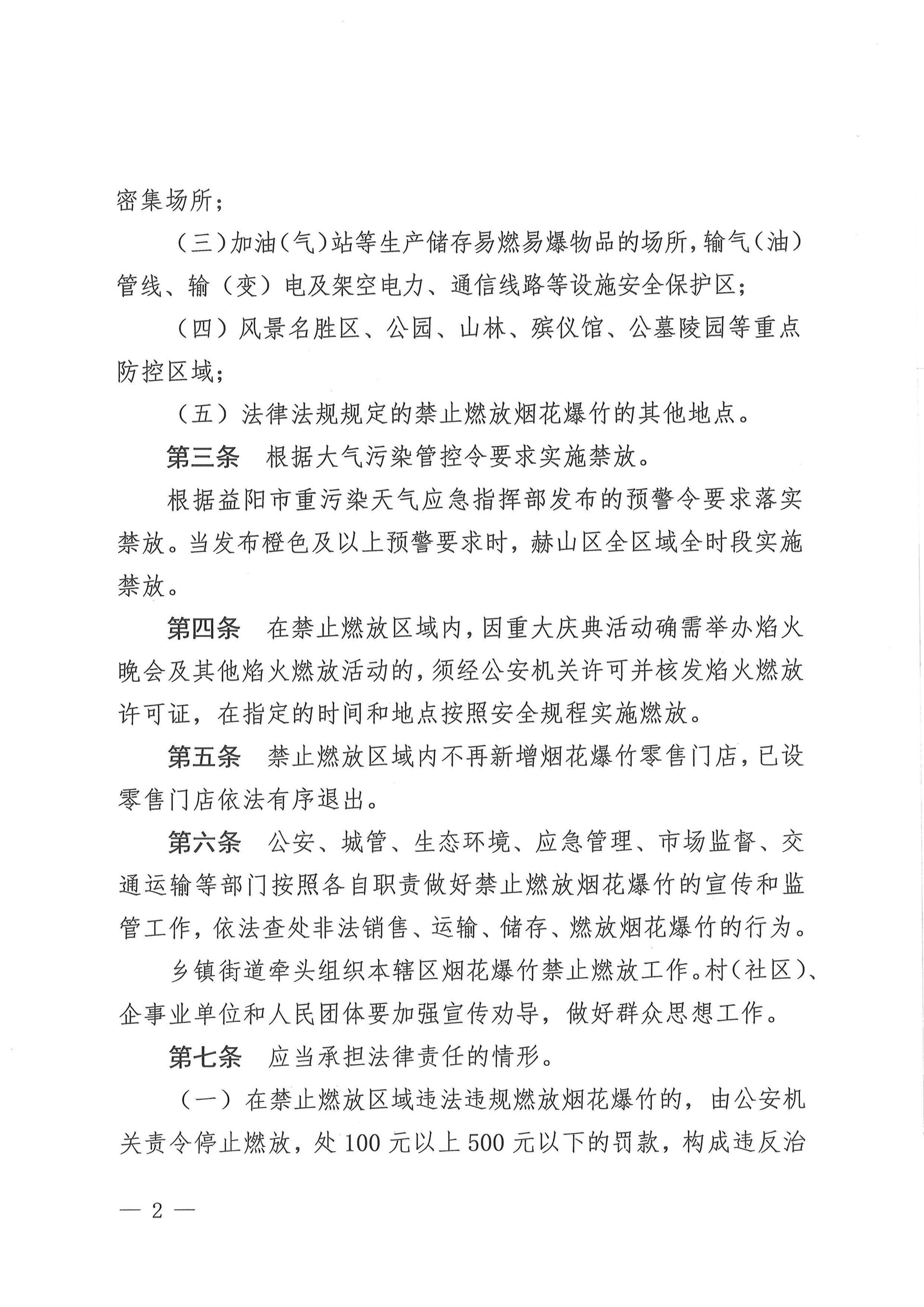 益阳市赫山区人民政府关于划定烟花爆竹禁止燃放区域的通告