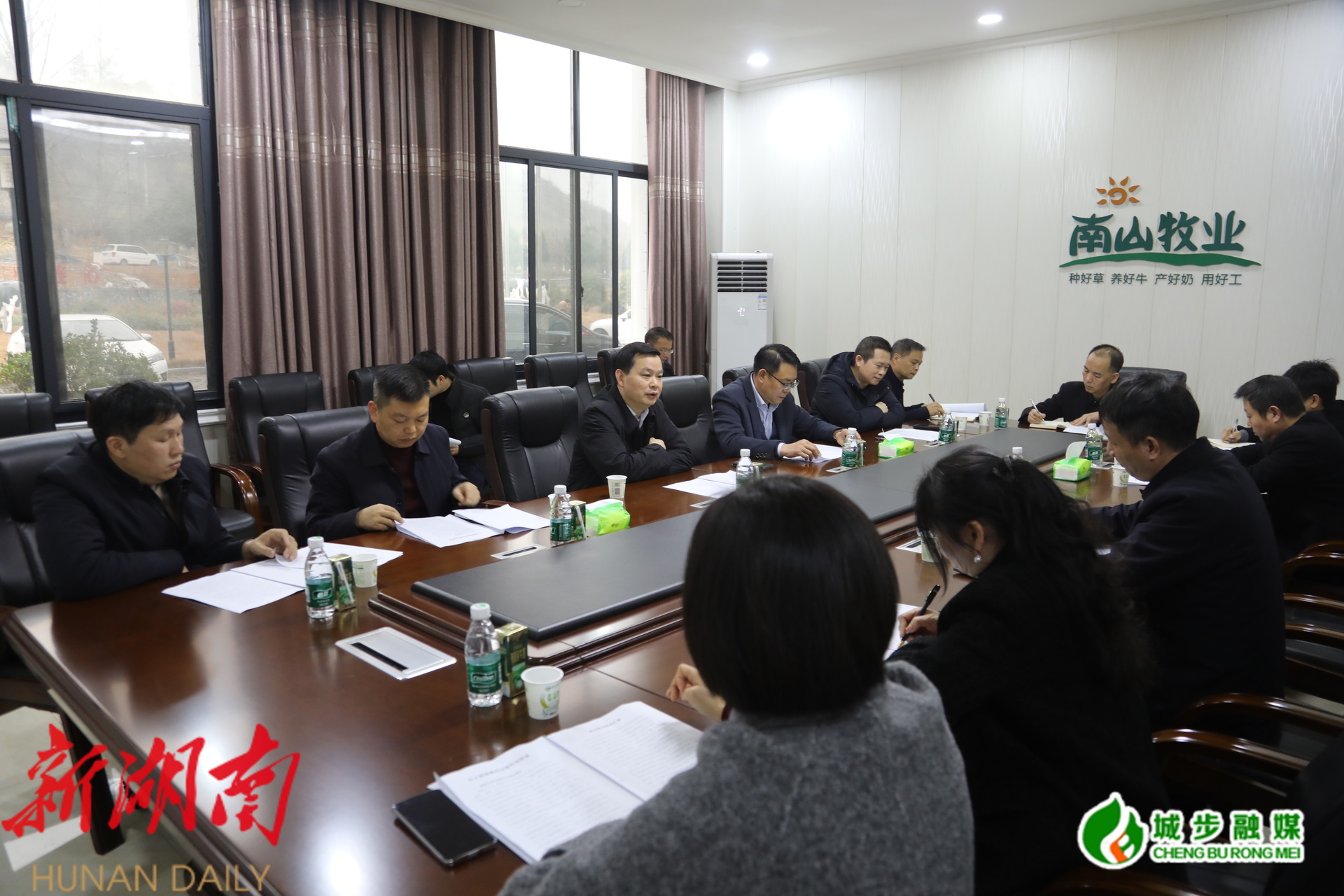 图为县委书记何德波在湖南南山牧业有限公司开展“送解优”行动
