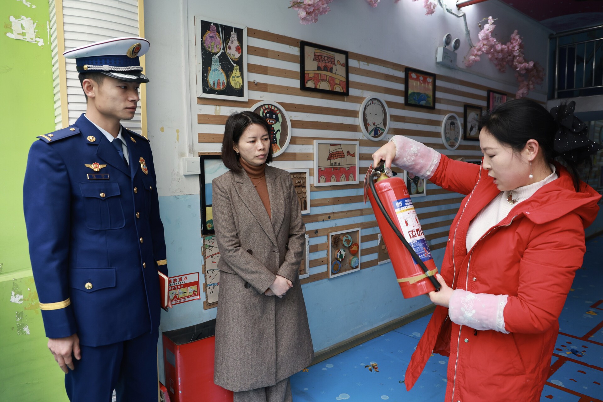 图为县委副书记、县长王慧敏在县梦想起航幼儿园督导消防安全工作