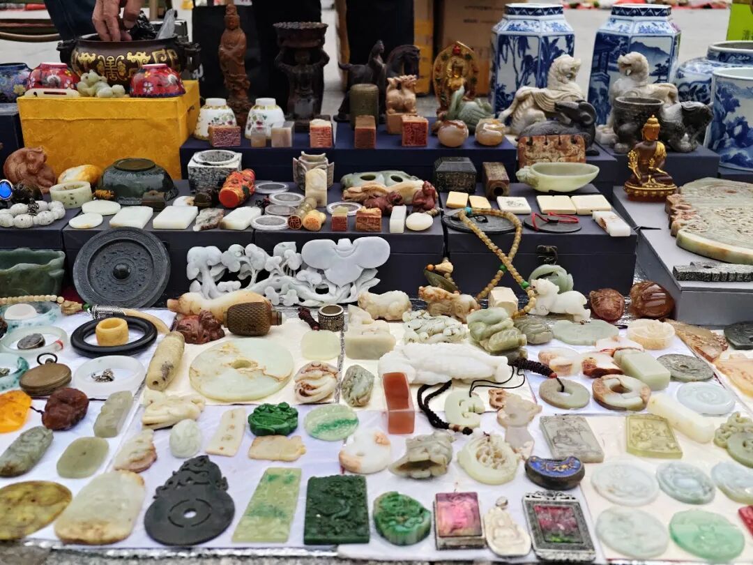 交易会现场摊位井然有序,众多藏友及文化爱好者早早前来观赏交流。瓷器、玉器、书画等传统古玩琳琅满目,兼具艺术性与创意性的文创产品也深受欢迎。现场交流鉴赏氛围热烈,人们在“淘货”与交谈中感受收藏与文化的魅力。此次活动不仅为古玩爱好者提供了交流平台,也成为展示零陵历史文化、推广“草书之城”品牌的重要窗口。