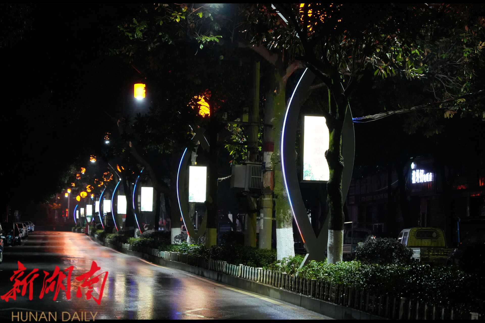 “以前这条路的路灯比较普通,现在换成这种带桔子造型的,晚上走起来又亮又亲切,感觉咱们县城越来越有特色了。”正在散步的市民王女士笑着对记者说。